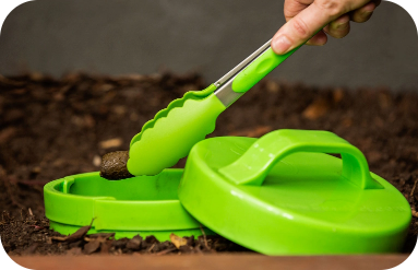 Collect your pet’s waste with the tongs and lid and drop it in the EnsoPet composter.